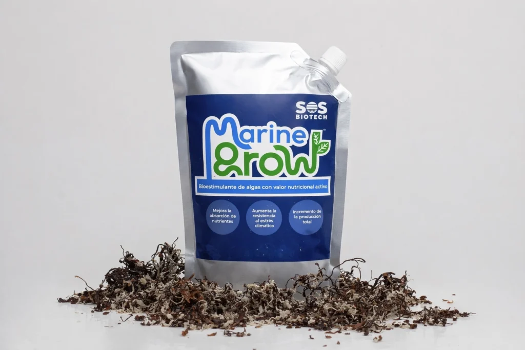 A certified organic biostimulant produced from invasive Sargassum seaweed, designed to protect crops against water scarcity, solar radiation, and overall biotic and abiotic stress, boosting productivity while reducing dependence on synthetic fertilizers.